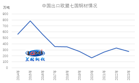 圖6 2014-2023年中國出口歐盟七國鋼材情況