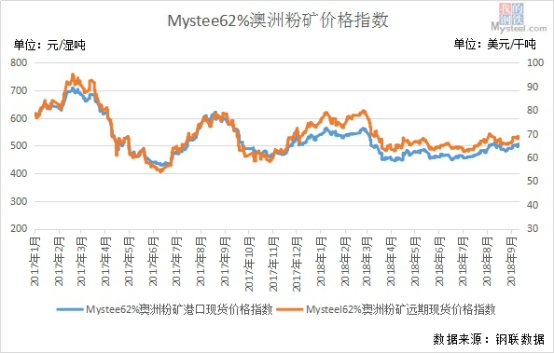 Mysteel62%澳洲粉礦遠期現貨(美元)