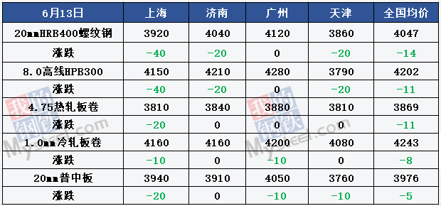 ◎建材成交量:6月13日,Mysteel全國貿易商建材日成交量16.51萬噸,較6月12日增加0.91萬噸。